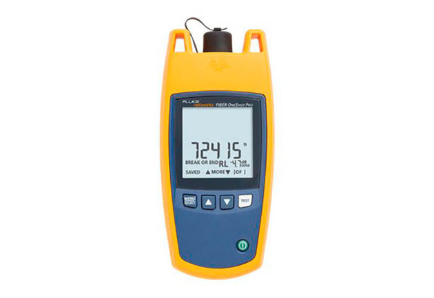 O Fiber OneShot PRO é um localizador de problemas de fibra monomodo que identifica curvas acentuadas, emendas com alta perda e conectores quebrados e sujos na fibra monomodo.
